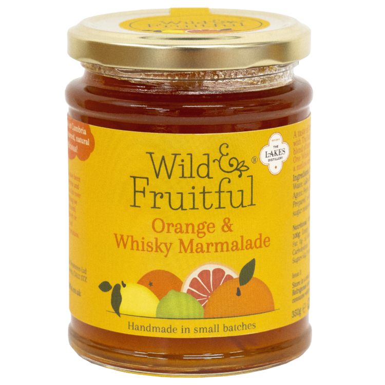 Sugar, Bitter Oranges (31%), Water, Lakes Distillery Whisky (3%), Gelling Agent: Pectin, Acidity Regulator: Citric Acid. Prepared using 31g fruit per 100g. Total sugar content 62g per 100g.